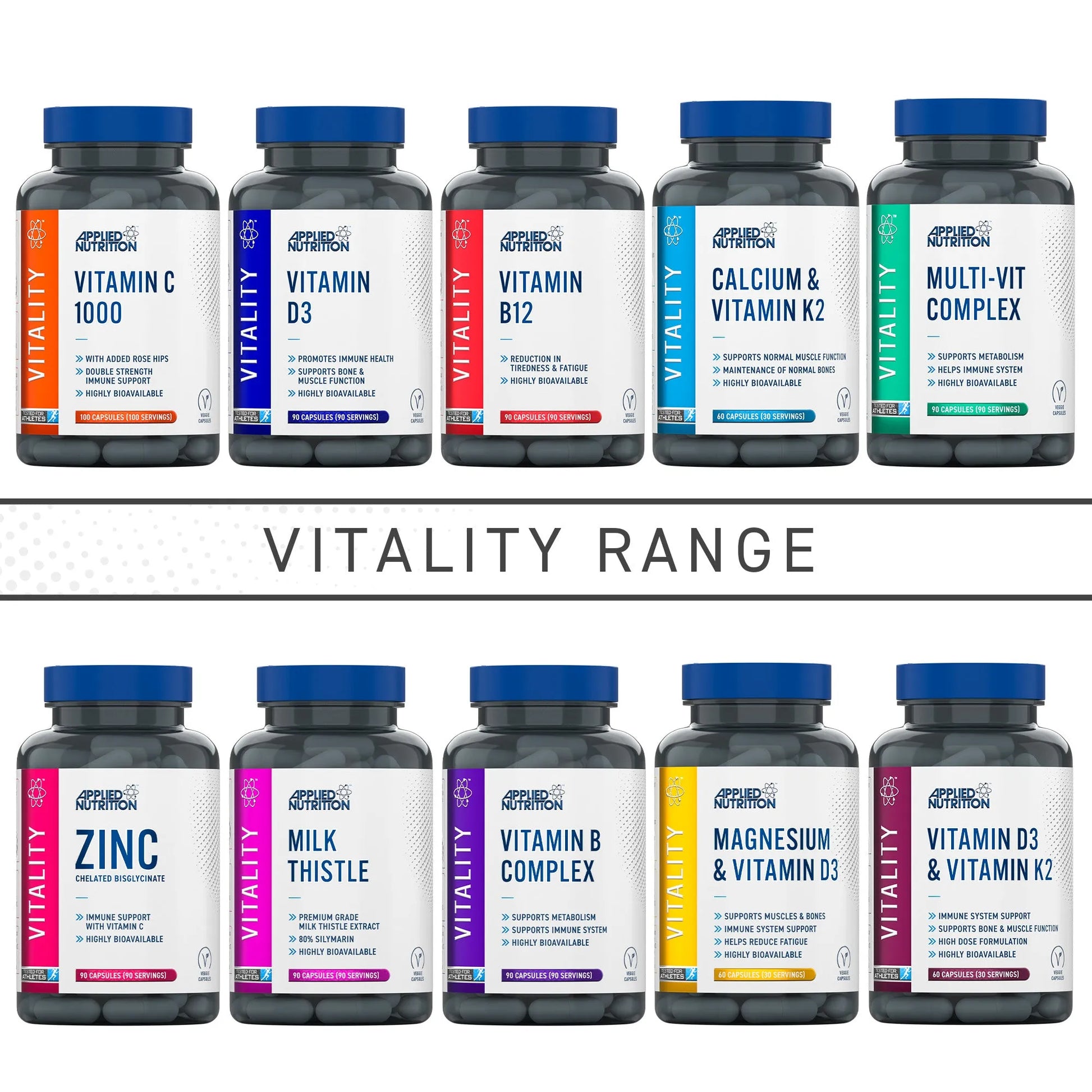 Support your daily health with Applied Nutrition Magnesium & Vitamin D3, a carefully balanced formula designed to contribute to the normal function of muscles, bones, and the immune system. Each serving delivers 280 mg of magnesium and 5 µg (200 IU) of vitamin D3, working together to support energy levels, reduce fatigue, and maintain electrolyte balance.